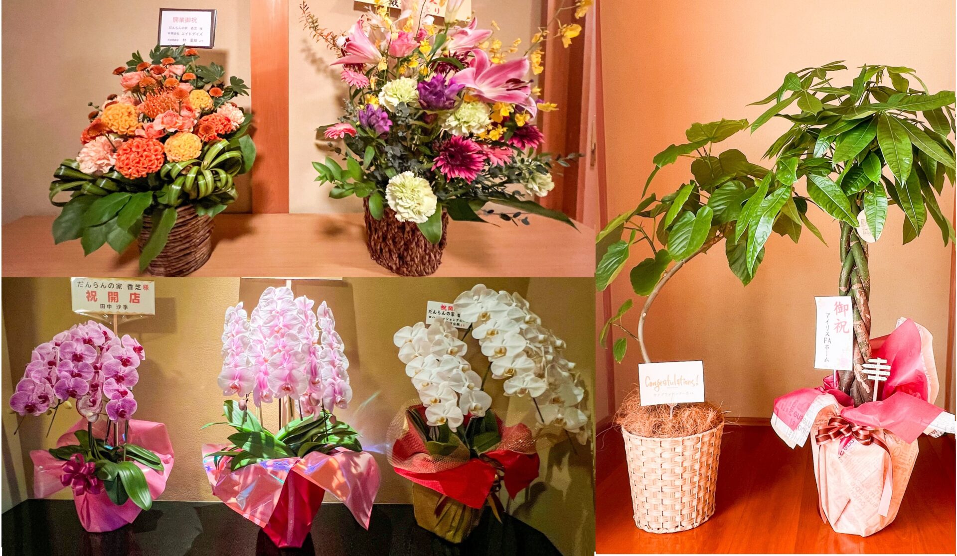 このたびは、開店祝いとしてたくさんのお花を賜り、誠にありがとうございました。色とりどりの花々が店内を華やかに彩り、スタッフ一同大変励まされました。頂戴したお花は店内に飾らせていただき、多くのお客様にもご覧いただいております。地域の皆さまのお力添えを糧に、地域に根ざしたサービスの提供に努めてまいります。今後とも変わらぬご支援とご愛顧を賜りますようお願い申し上げます。